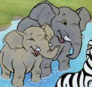 Для мира мультфильма свойственны африканские (или саванные) слоны, поскольку, как известно, его действия разворачиваются на фоне просторов Африки.